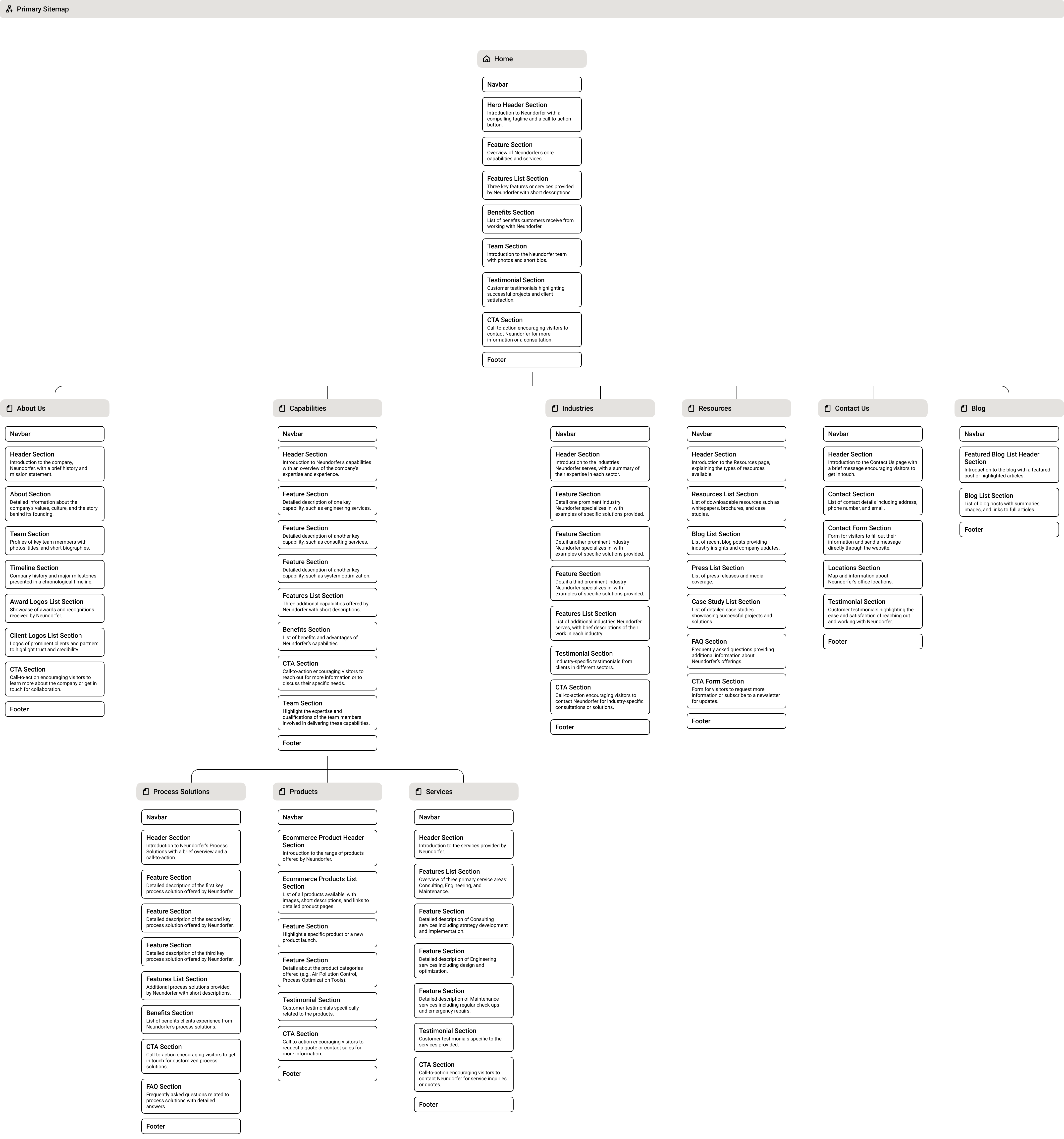 One of the primary challenges of this project was strategically organizing the website’s pages and content to enhance usability. To tackle this, we first gained an in-depth understanding of Neundorfer’s diverse product and service offerings. This involved close collaboration with the client and conducting extensive market research, which informed our development of an optimized content structure that became the foundation for our wireframing and design process.
