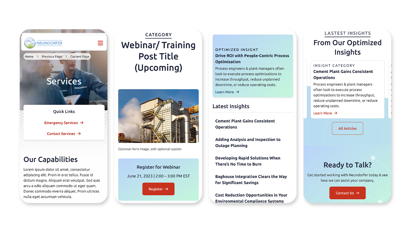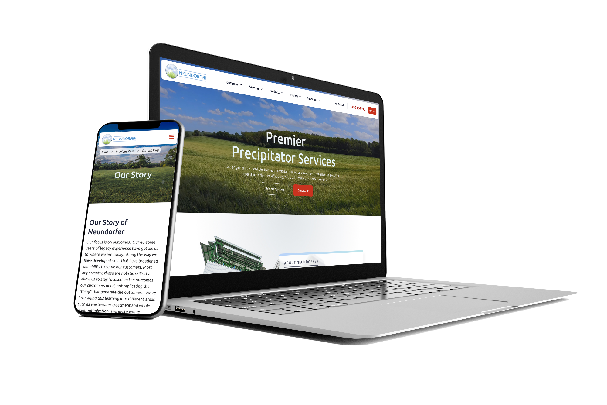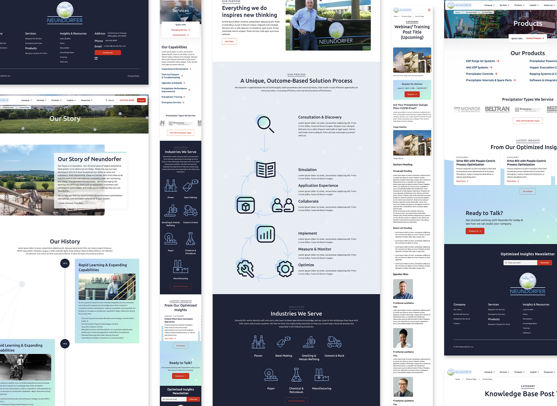The primary objective of the project was to redesign the website to provide a more seamless and intuitive user experience. By reorganizing the site’s structure and improving navigation, we aimed to make it easier for users to quickly access key information. Another important goal was to modernize the design, aligning it with current industry trends and better representing the client’s brand identity. Lastly, we sought to resolve the issues surrounding user communication by improving contact functionality, ensuring that users could effortlessly reach the experts at Neundorfer, thereby increasing lead generation and fostering the company’s growth. We also identified an opportunity for Neundorfer to become an expert in the field through their thought leadership. This became an important part of the sites structure.