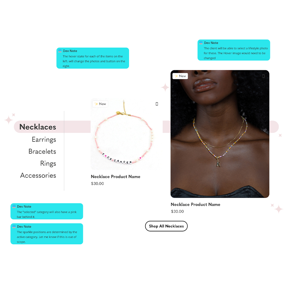 Throughout the redesign, I collaborated with our team of developers to make sure we used Shopify’s flexibility to integrate custom elements that met the client’s needs while leveraging best practices for e-commerce.